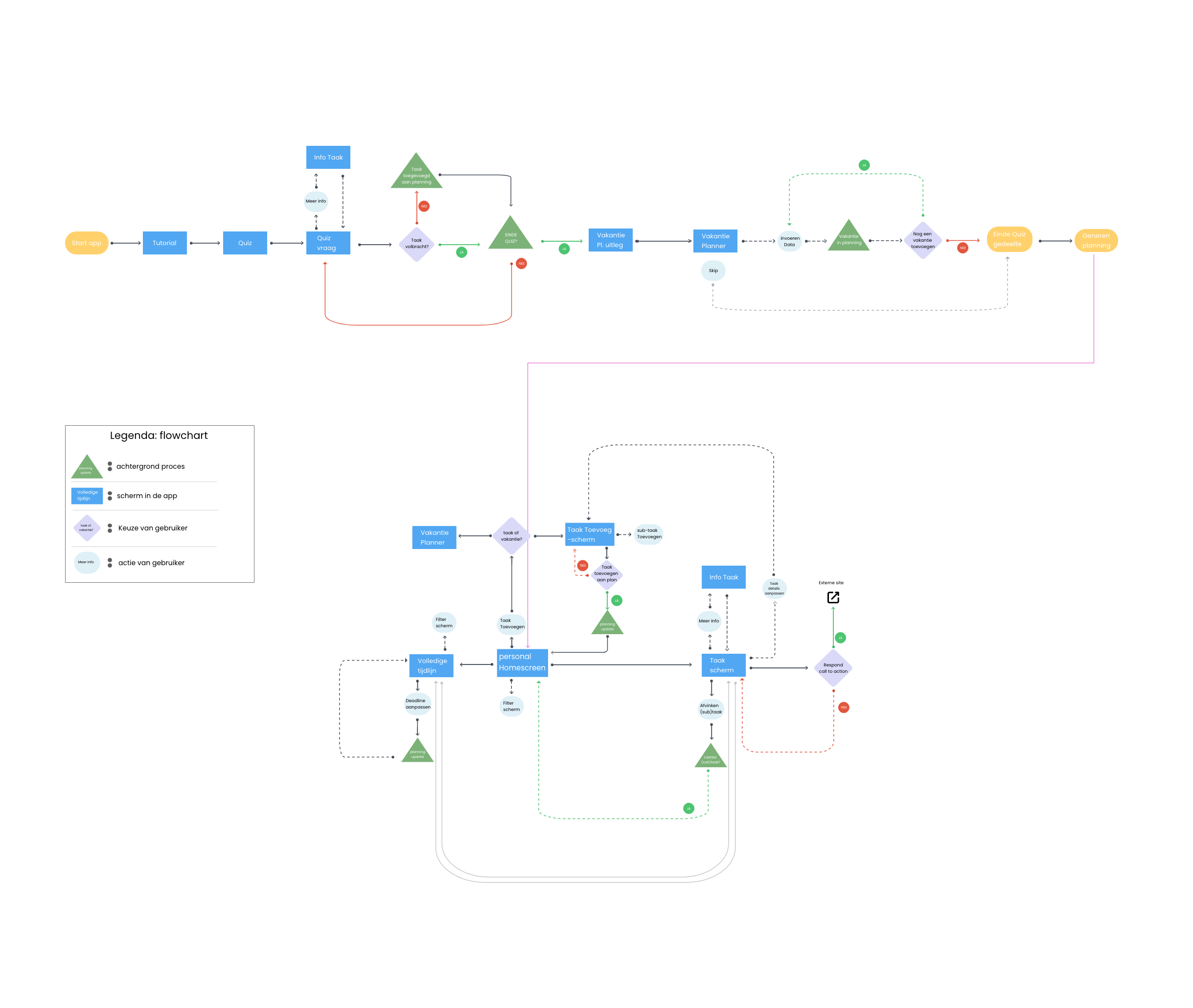 Hieronder is de opbouw van de studiestarter in de vorm van een flowchart. Deze heb ik gemaakt om de opbouw uit te schetsen voor mijzelf en de applicatie te pitchen aan Studienet.