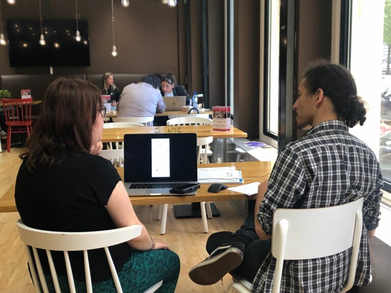 Hierboven een foto van het afnemen van een usertest voor de studiestarter.